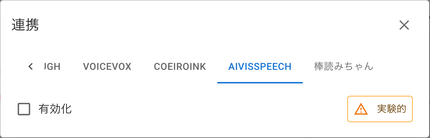 | ①有効化 | AivisSpeechを使った読み上げを有効化 |