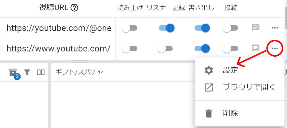 | ① 表示対象 | 複数の配信枠がある場合に配信枠ごとに絞り込みできます |