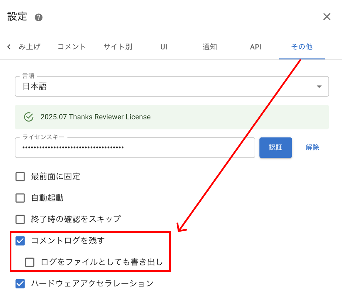 これを有効にするためには設定その他 から「コメントログを残す」にチェックを入れてコメントを取得する必要があります