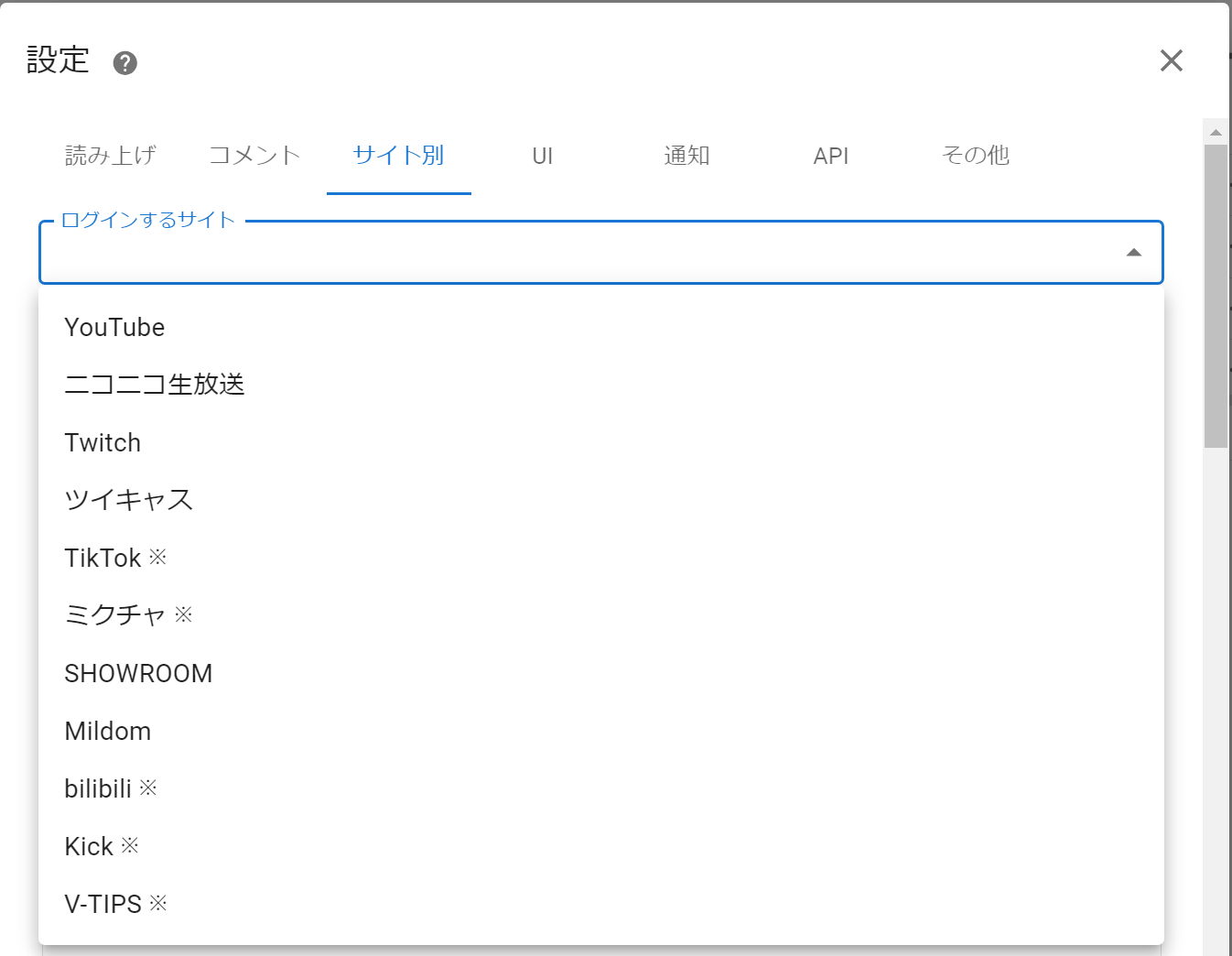 設定画面が開くので「ログインするサイト」でログインしたいサイトを選択してください(複数可)