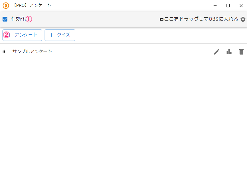 右上にある①をドラッグしてOBS等の配信ソフトへドロップします