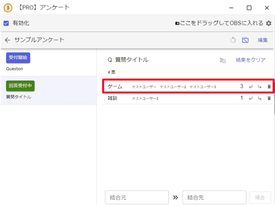 下図のように選択肢を「ゲーム」1つに投票をまとめることができます