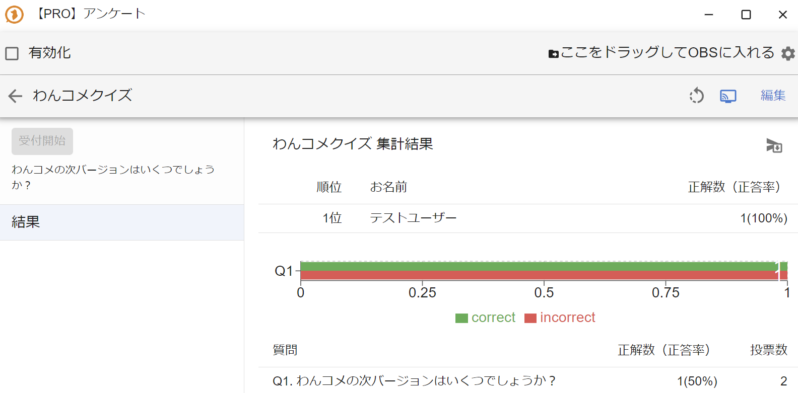クイズの場合は質問ごとに正解の設定ができ、それに応じて自動的に集計・ランキングを生成します