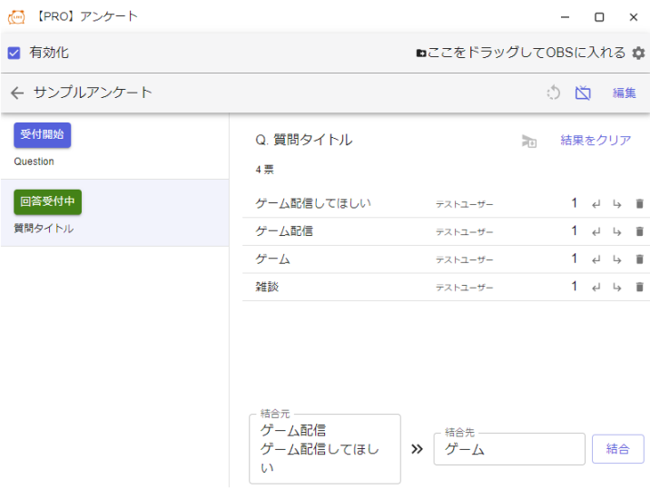 リクエスト式では表記揺れしてしまった同じ様な内容の選択肢を結合する機能も搭載しています