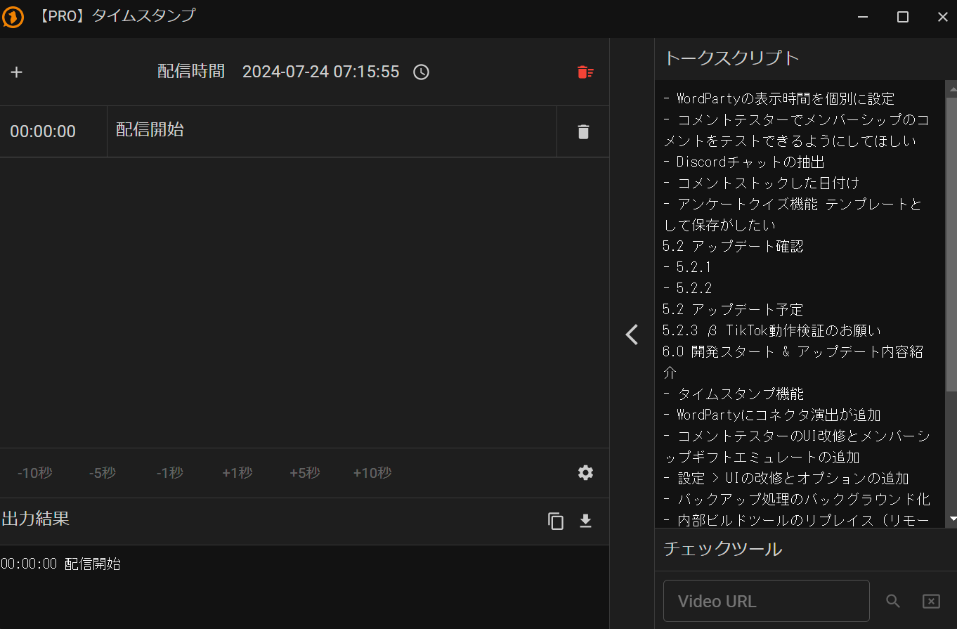 配信しながらタイムスタンプを作成できるツールが使用できます