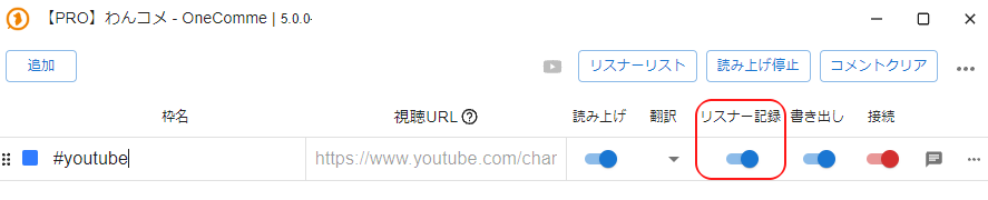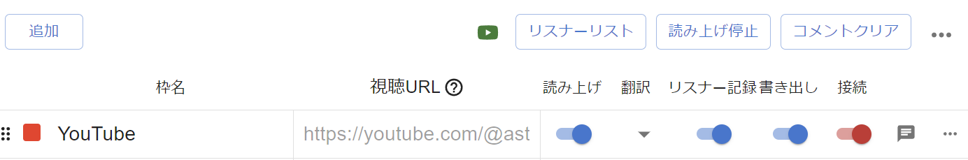 この状態で「接続」しコメントを取得すると、ユーザーのデータが自動で記録されていきます