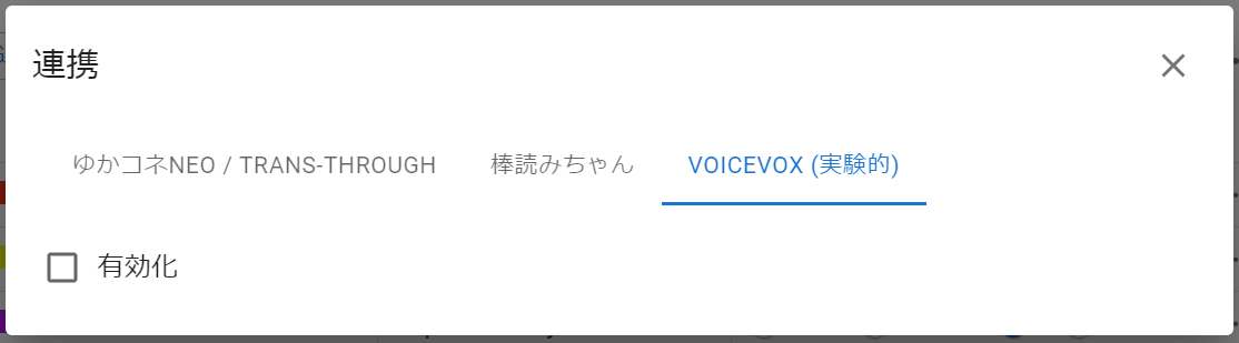 VOICEVOX連携ができた場合、読み上げボイス一覧が表示されます